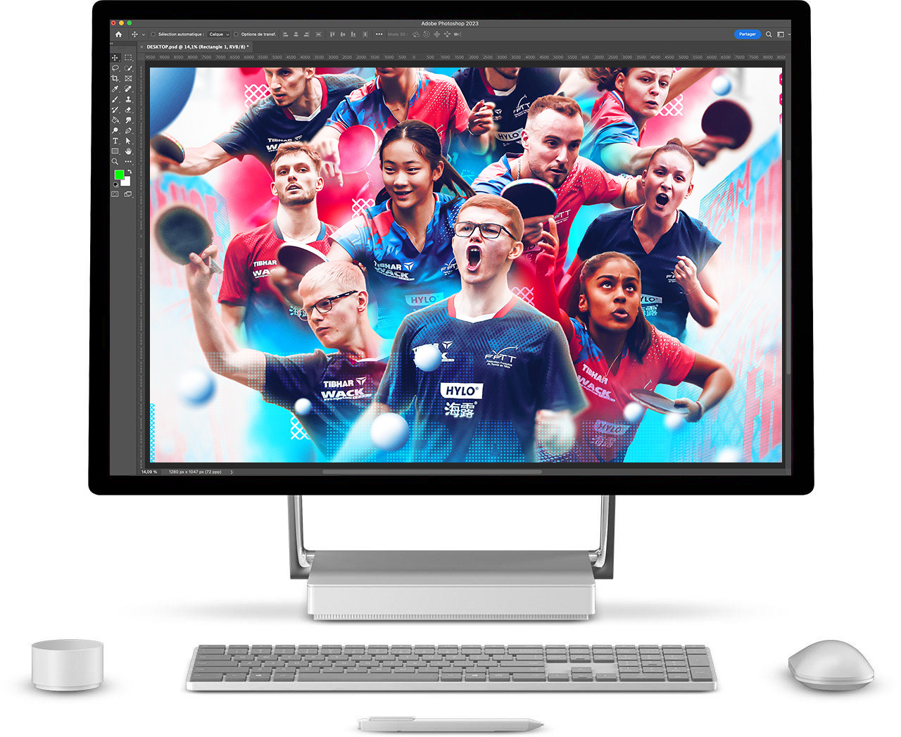 Également, j’ai créé un template pour l’ensemble de la délégation, y compris les non-médaillés. L’univers créatif dynamique, et les teintes symboliques de bleu, blanc et rouge, sont à l’honneur pour capturer l’énergie et l’émotion du Tennis de Table.